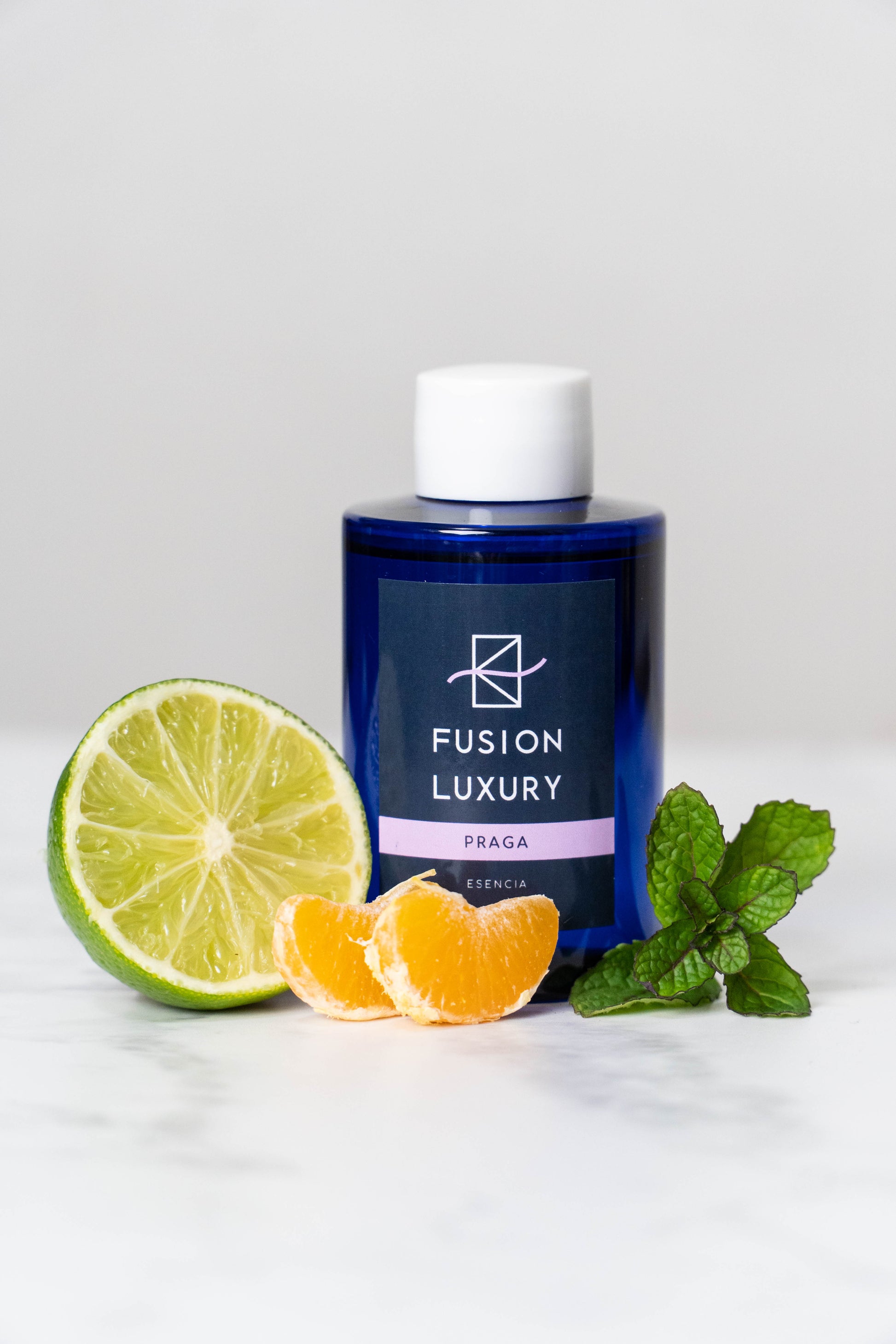 Déjate envolver por la esencia de Praga, una fragancia de Fusion Luxury que combina cítricos vibrantes, notas florales y un toque fresco de menta.